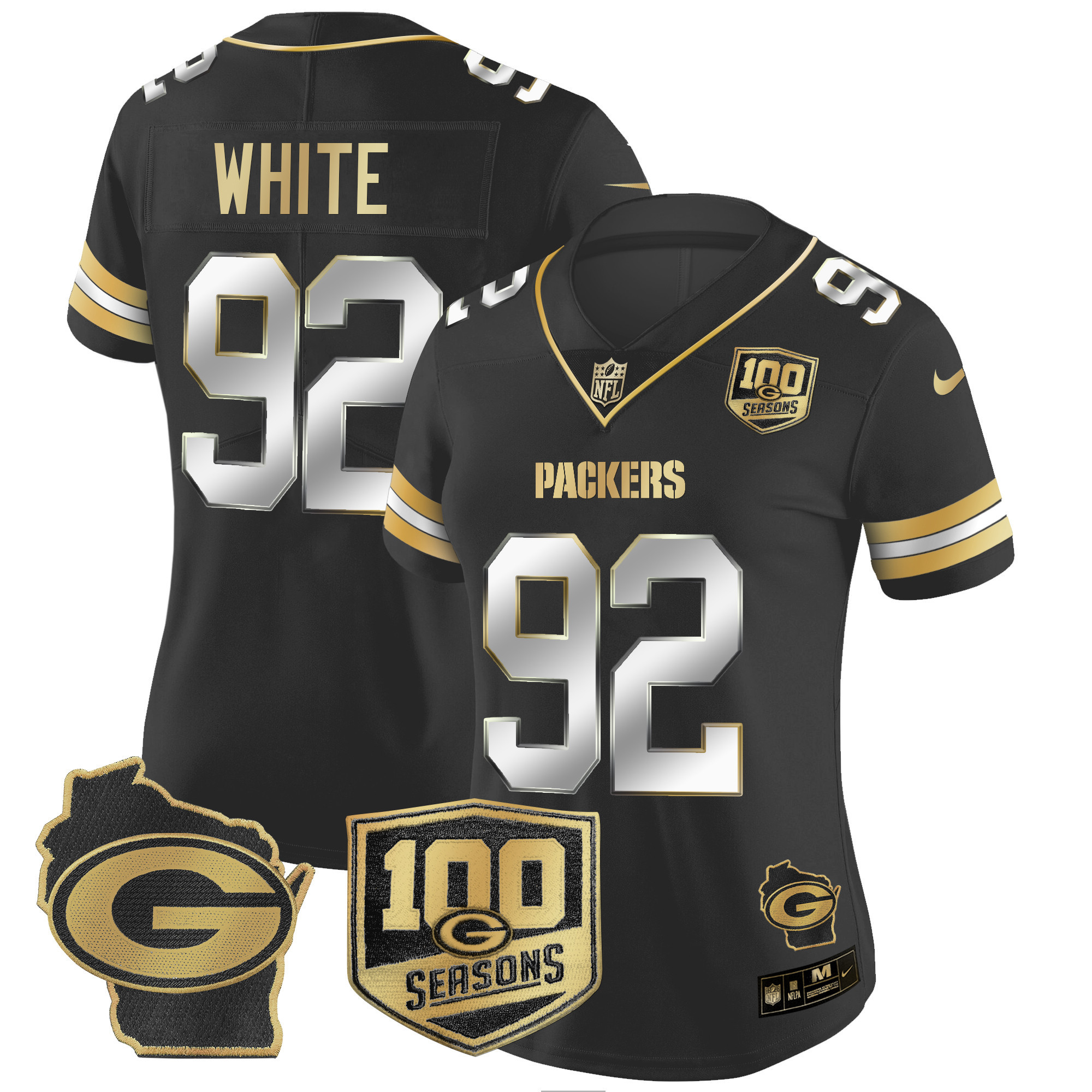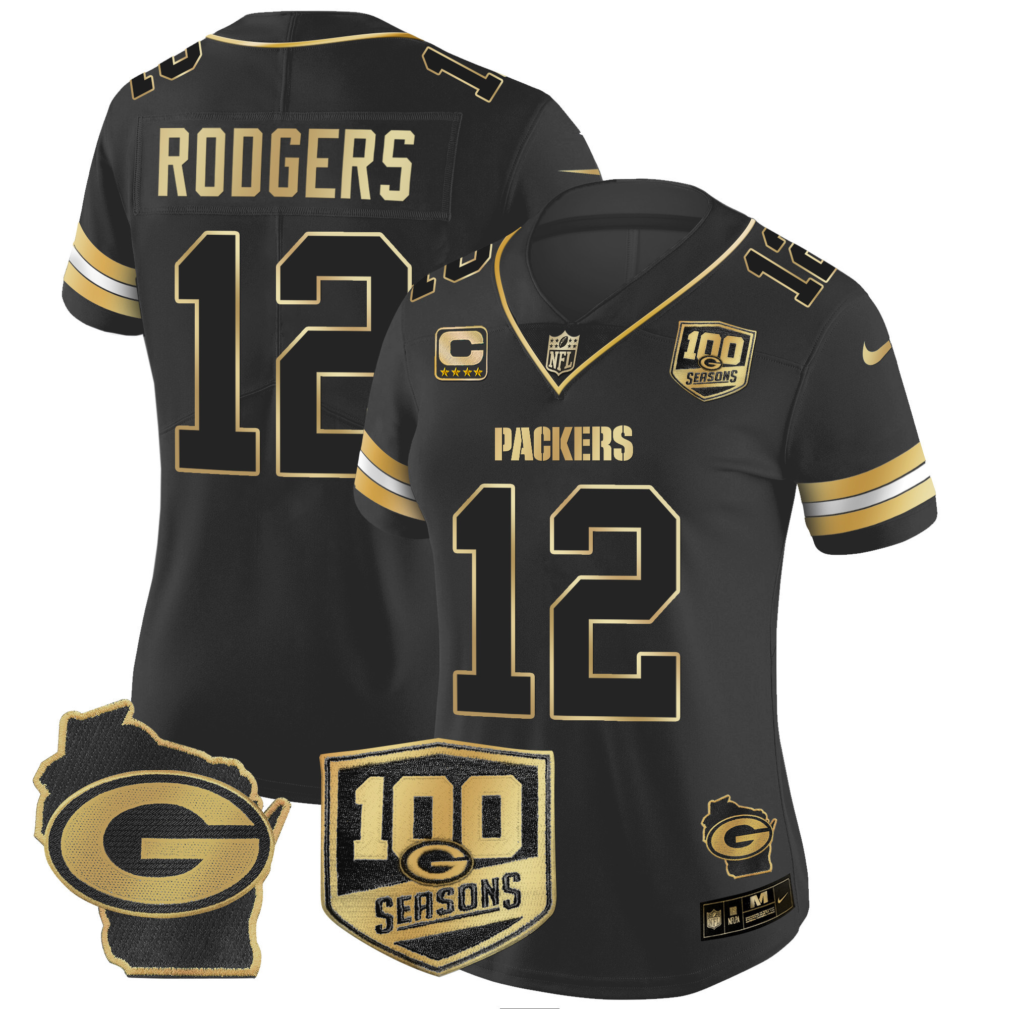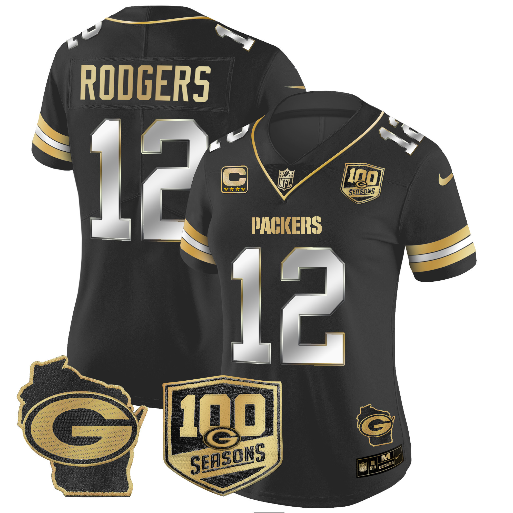 Women’s Packers 100th Season & Home Patch Gold Vapor Limited Jersey All Stitched