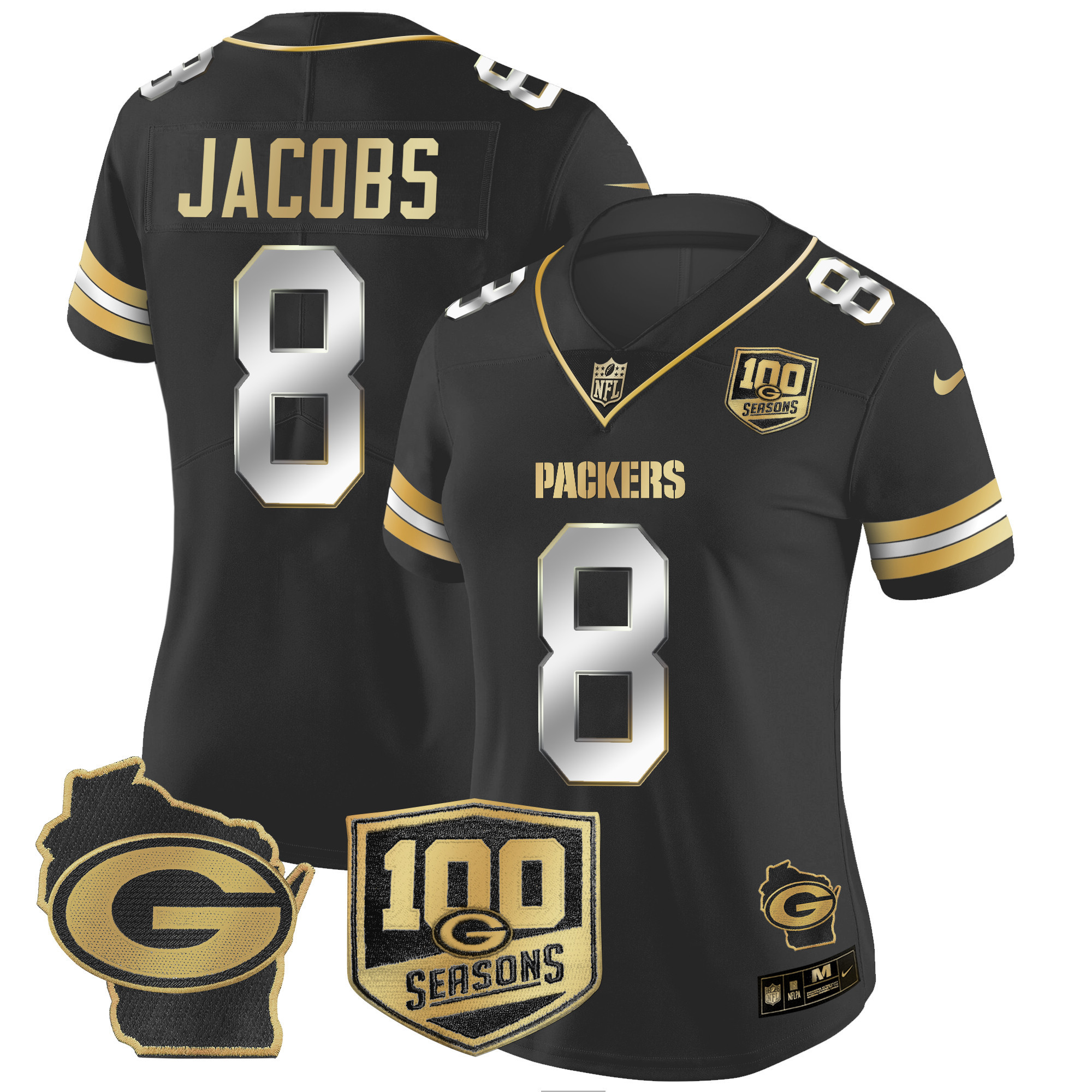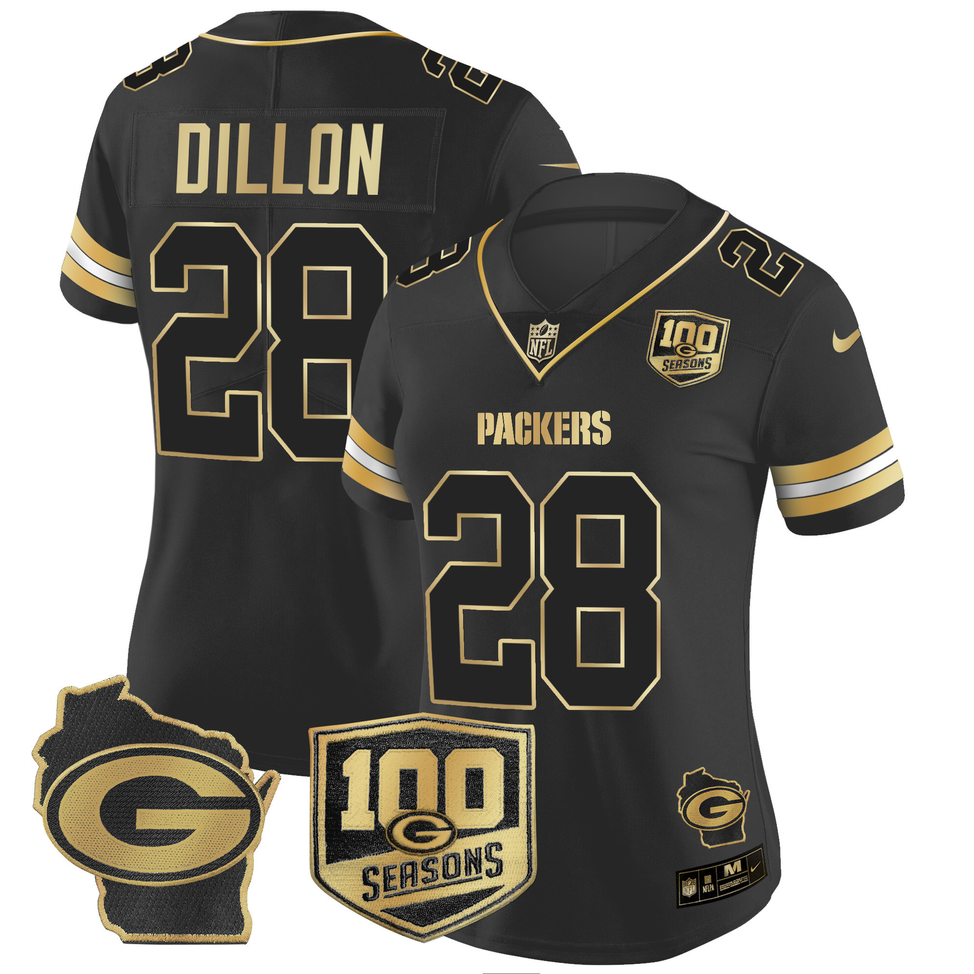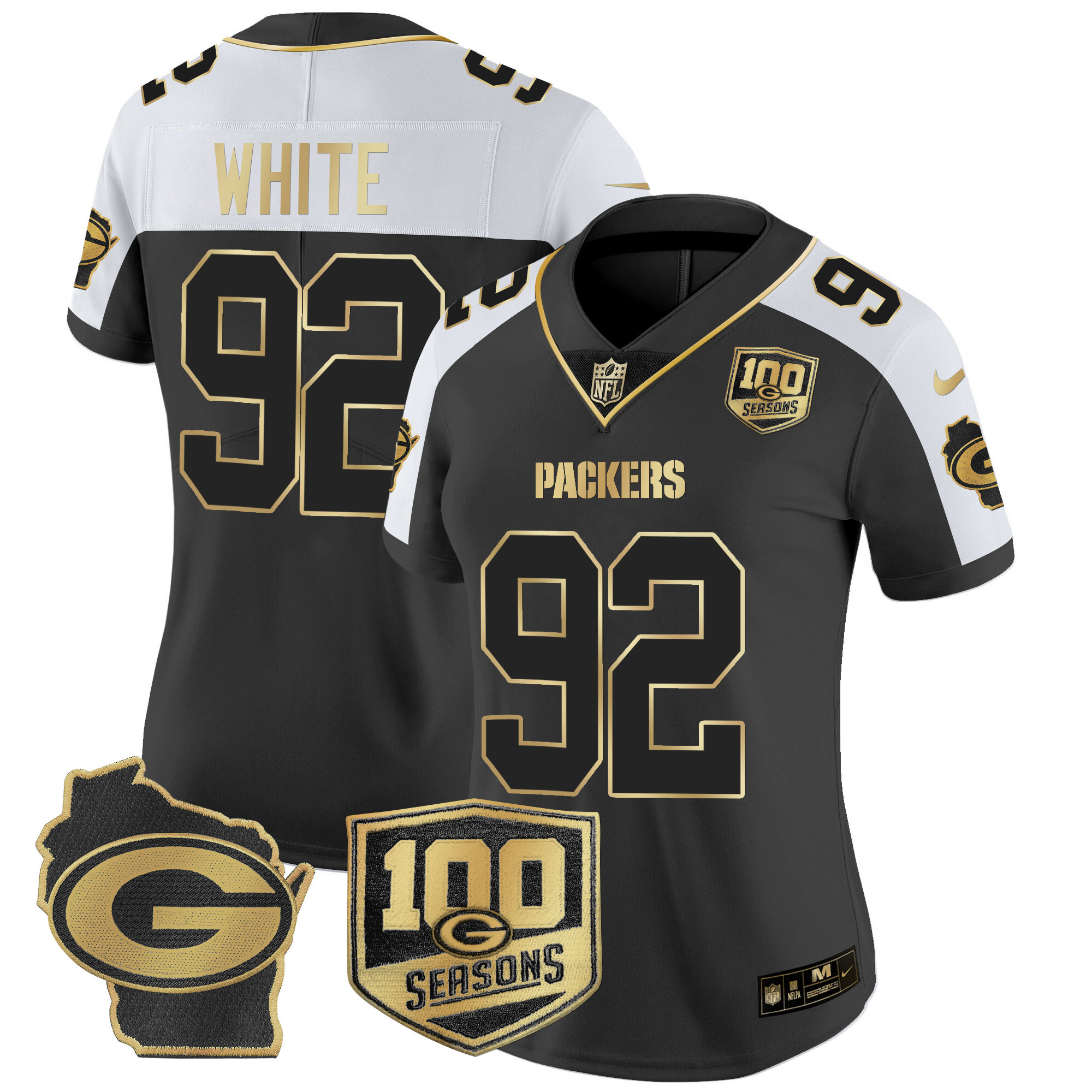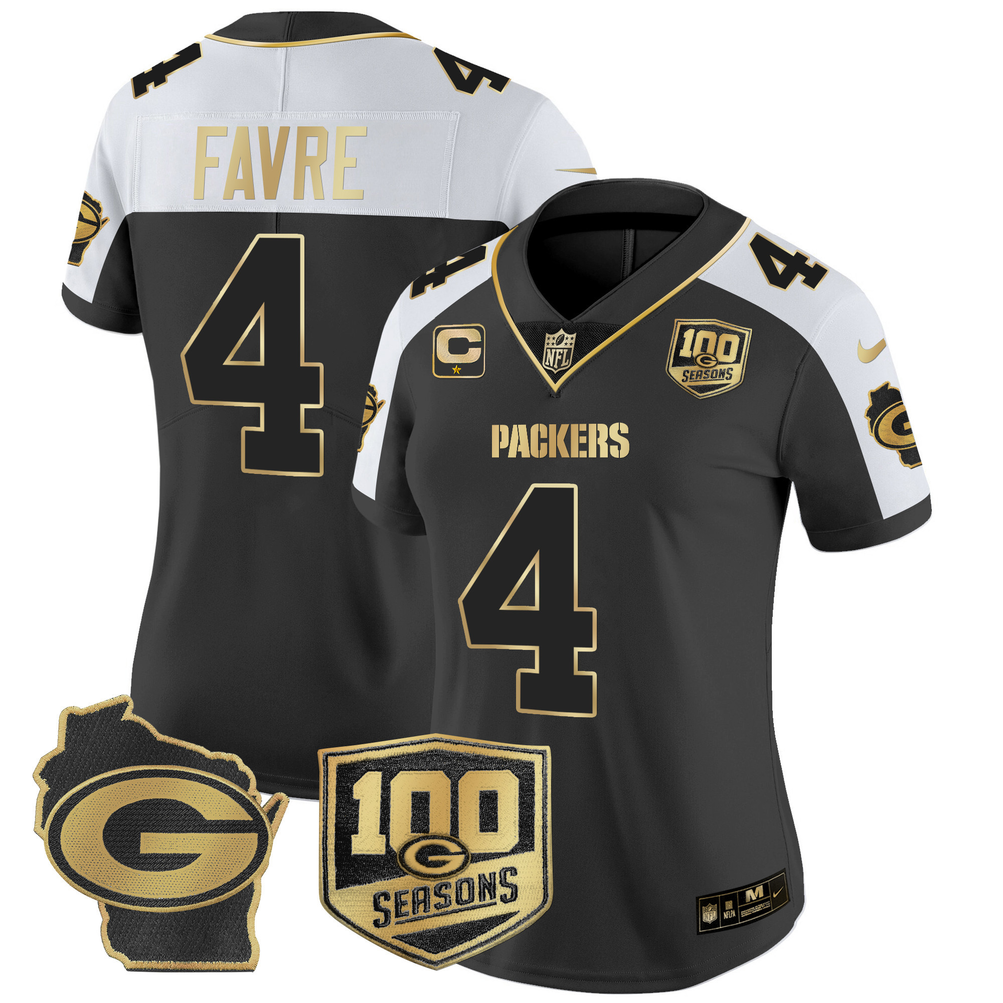 Women’s Packers 100th Season & Home Patch Gold Vapor Limited Jersey All Stitched